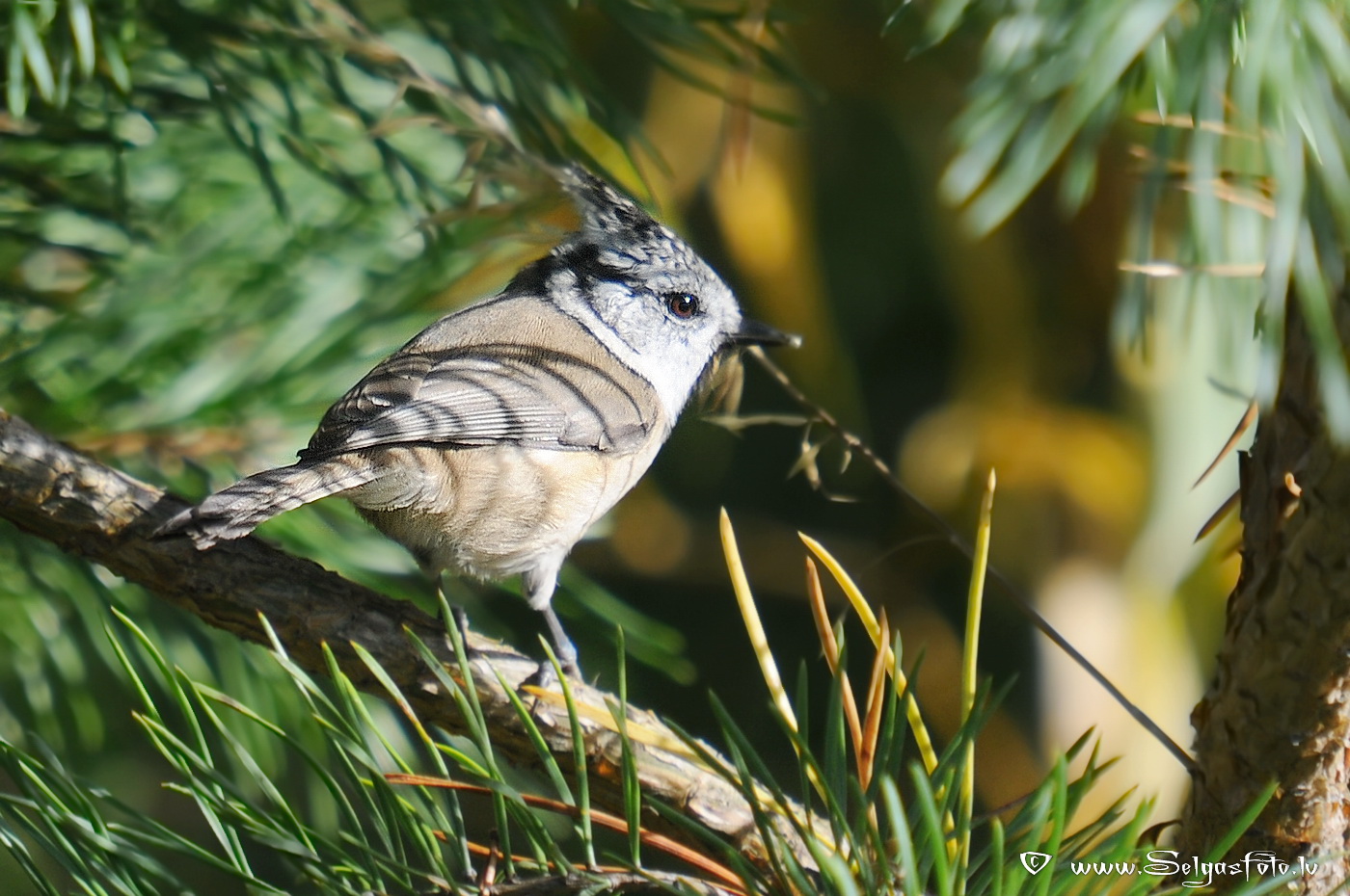 CEKULZĪLĪTE /Lophophanes cristatus/. Crested tit. Haubenmeise. Tofsmes. Tutt-tihane. Хохлатая синица.
